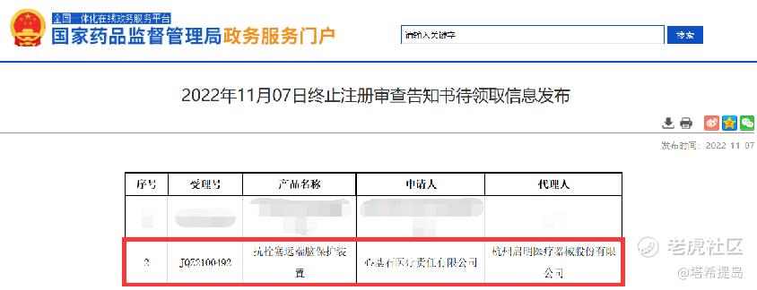 11月7日,NMPA官网获悉,NMPA对Keystone Heart, Ltd.(心基石医疗有限责任公司,代理人:杭州启明医疗器械股份有限公司)申报的“抗栓塞远端脑保护装置(商品名:TriGUARD 3™,受理号:JQZ2100492)”终止注册审查。