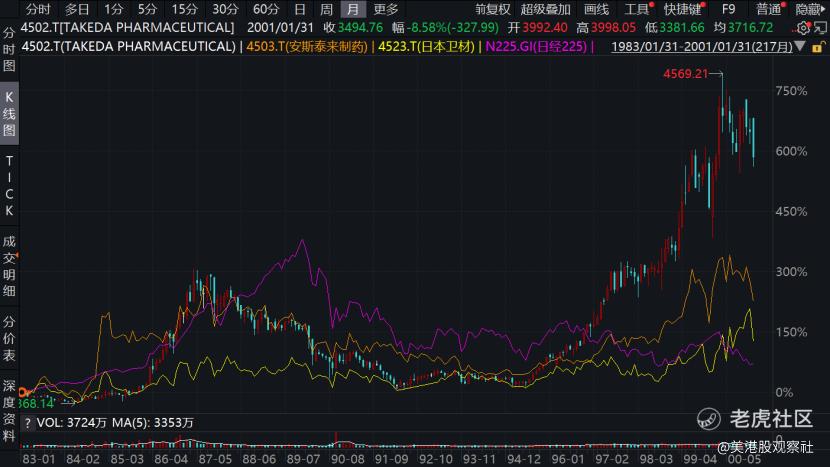 对于整个医药板块来说,即使有集采的压力,但是在老龄化和经济增长的大趋势下,医药板块的长期投资价值并不会改变。日本就是个典型的例子。日本在20世纪80年代开始药品大规模集采,1988年进行全面集采,行业进入阵痛期,一些没有竞争力的药企被淘汰,但同时也催生了武田制药这样的龙头企业。集采期间,武田制药、安斯泰来、卫材药业的股价都经历了大幅下滑,但是随后又开始了上涨,尤其是武田制药,从1995年到2000年5年翻了5倍,远远跑赢了日经指数。以邻为鉴,我们是不是应该对医药投资充满信心?