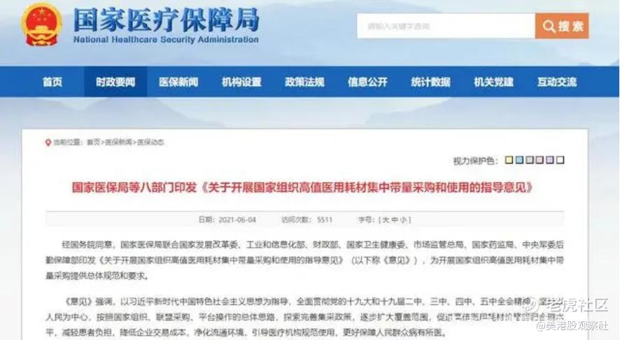 医保局除了对药品集采外,对医疗器械同样进行集采。2020年2月,国务院发布《关于深化医疗保障制度改革的意见》,要求面实行药品、医用耗材集中带量采购。2021年6月,医保局发布关于开展国家组织高值医用耗材集中带量采购和使用的指导意见,明确了医用耗材集中带量采购的标准和范围。