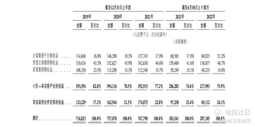 雪上加霜的是,猪八戒网的核心业务板块正在面临收入不断下滑的窘境。从招股书来看,猪八戒网的收入结构主要分成四部分,分别是提供企业服务、智慧企业服务、产业服务以及政府区域企业服务生态促进合作。其中智慧企业服务也就是代理记账和商标代理业务,其收入占比达到40%以上,是猪八戒网重要的营收来源,然而2022上半年智慧企业服务实现营收1.17亿元,同比下滑26.7%。