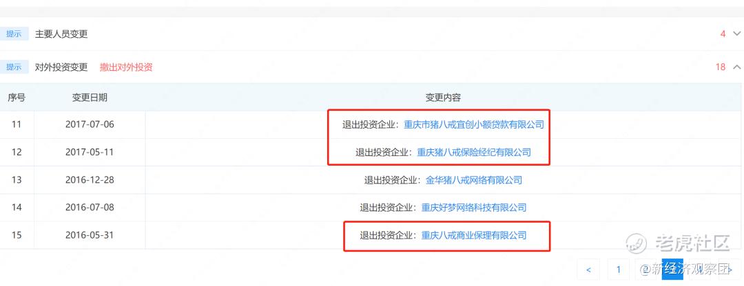 除此以外,猪八戒网还曾手握私募基金、小额贷款、保险经纪、商业保理等四张张金融牌照。在2016-2018年,公司已先后退出投资企业重庆八戒商业保理有限公司、重庆猪八戒保险经纪有限公司(以下简称“猪八戒保险”)、重庆市猪八戒宜创小额贷款有限公司(以下简称“猪八戒小贷”)、重庆猪八戒股权投资基金管理有限公司。2020年12月23日,猪八戒保险经纪被注销。