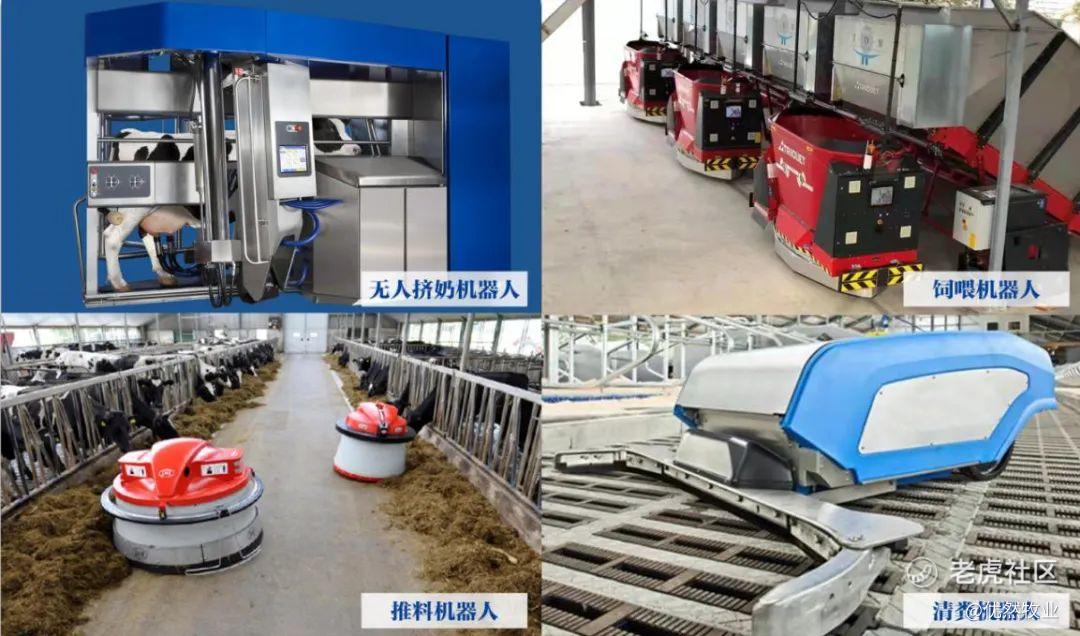 优然牧业新建的智慧牧场中,引入了世界最先进的全智能无人挤奶机器人、饲喂机器人、推料机器人、清粪机器人等,最大程度减少人为干预引起的奶牛应激,提高标准化程度的同时降低运营成本。