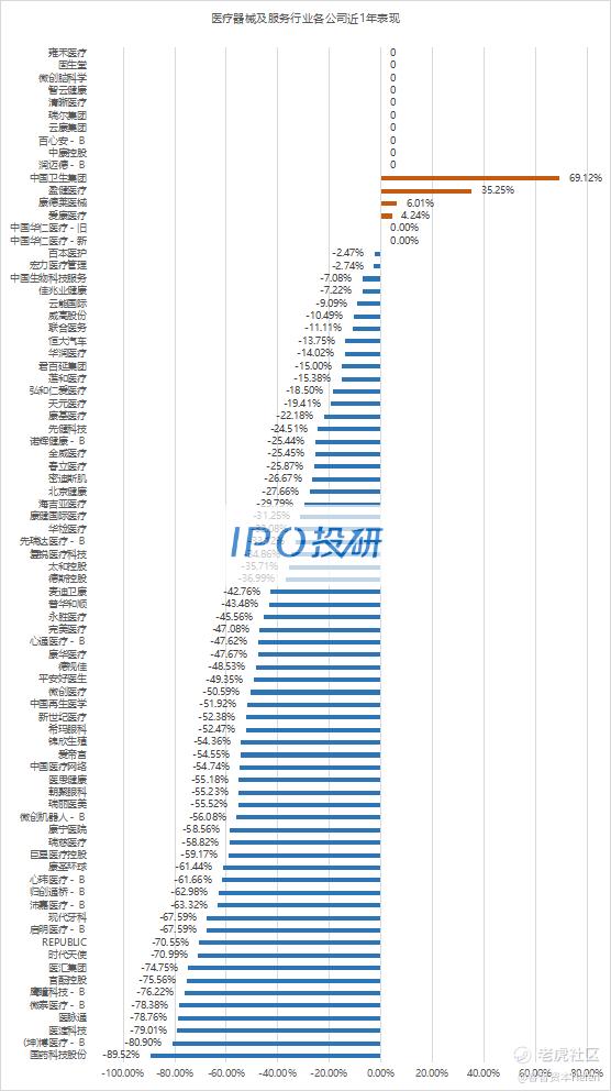 近1年涨幅最大的是中国卫生集团(00673.HK),涨幅为69.12%;跌幅最大的是国药科技股份(08156.HK),跌幅为-89.52%。