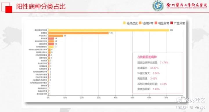 筛查发现,占比前五的阳性病种包括眼底动脉弹性减弱占71.74%,玻璃膜疣占35.87%,杯盘比偏大占8.84%,黄斑前膜占3.43%,黄斑部异常占3.43%。