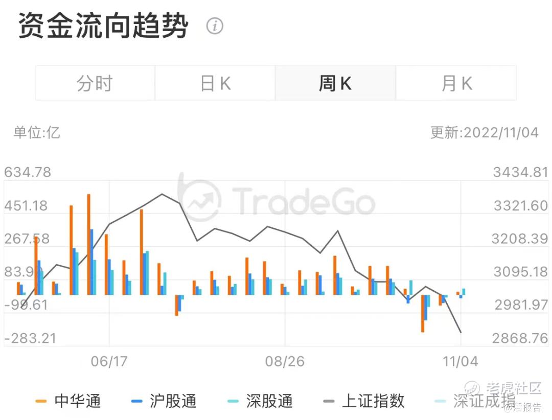 上周中华通净流入17.04亿人民币,其中沪股通净流入-18.35亿元,深股通净流入35.39亿元;上证指数上周五收于3,070.80点,周累计涨幅5.31%。
