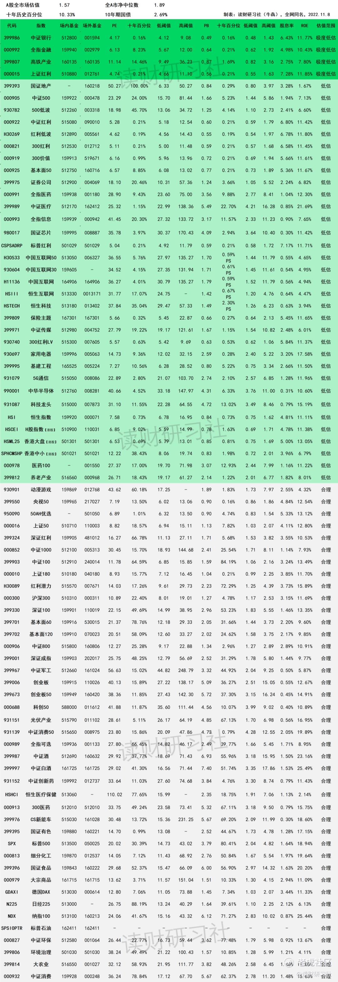 本期估值表没有太多变化,围绕宽指、行指、策指、海外及大宗,其中我认为需要重点关注的还是医药、中概以及大宗。