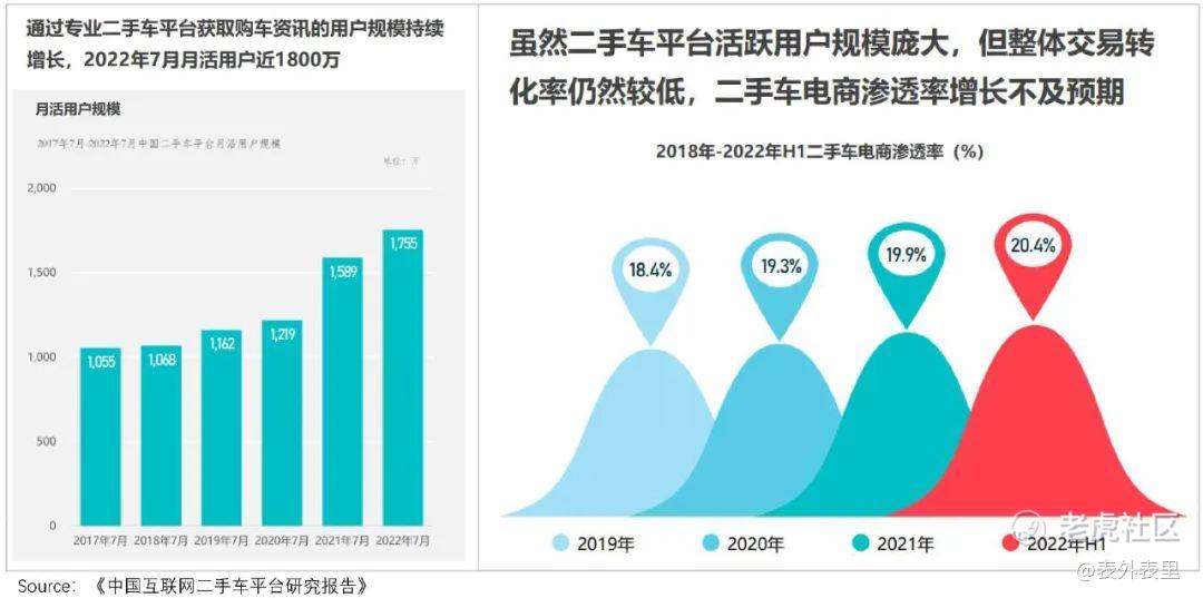如此一来,二手车的信息透明度建设受限,比如车况和价格都很不规范。但在此行业成熟度不足的背景下,移动互联网兴起叠加资本市场热情高涨,二手车行业被“拔苗助长”迅速走高。