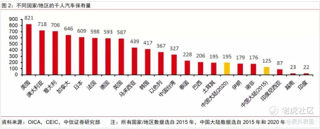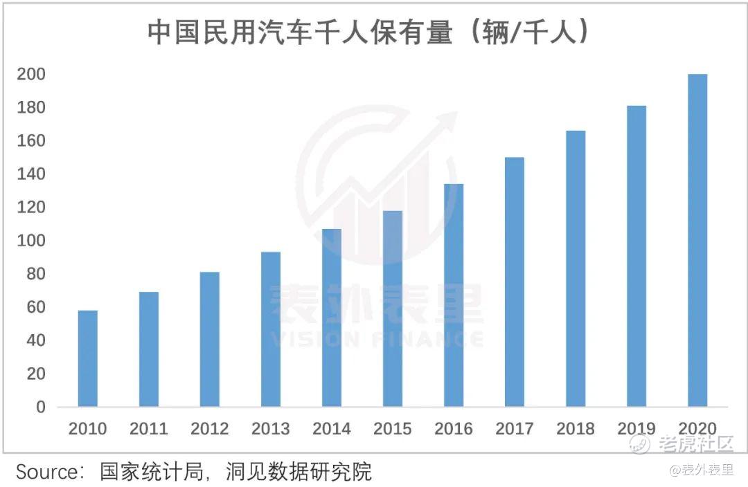 如下图,2020年,我国民用汽车千人保有量已经达到200辆/千人,按照平均4人为一家庭计算,每个家庭约合0.8台车。首辆车普及期结束,意味着二手车市场热度可能随之提升。