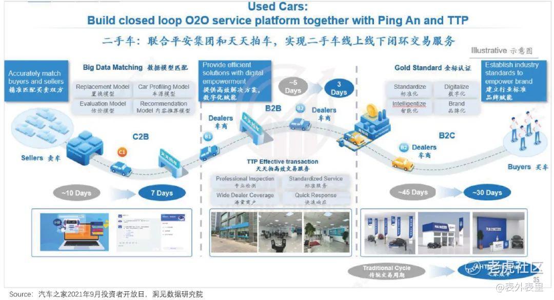 比如,联动平安银行、平安租赁为二手车交易提供分期金融服务;也可以联动平安产险为不同车况的二手车提供质/延保等服务。