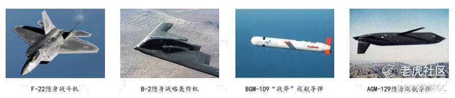 (2)90 年代后期,F-117 和 B-2 两款隐形轰炸机和战斧隐身巡航导弹在“海湾战争”和“科索沃战争”进行充分实战化应用;