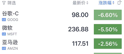 其中美股科技龙头出现大跌情况。