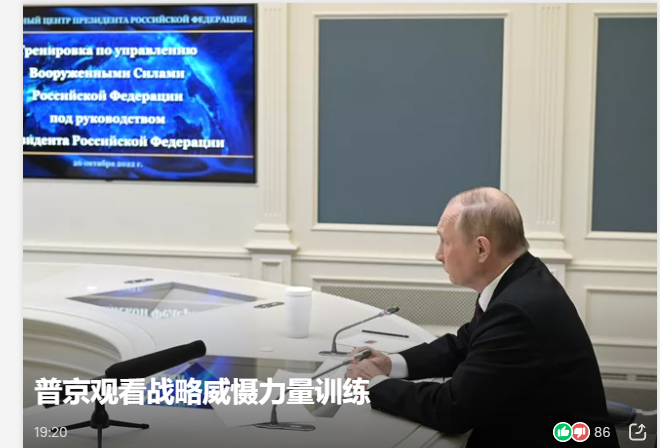 另据美媒报道,当地时间10月25日,美国国防部发言人帕特·莱德在简报会上表示,俄罗斯已通知美国即将举行年度军事演习,其中包括战略核力量演习。
