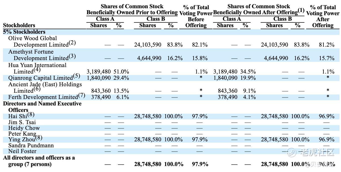 相比之下,中新创投通过Hua Yuan International Limited持有51.0%的A类普通股,乾融资本通过Qianrong Capital Limited持股29.4%,古玉资本通过Ancient Jade (East) Holdings Limited持股13.5%,Ferth Development Limited持股6.1%。