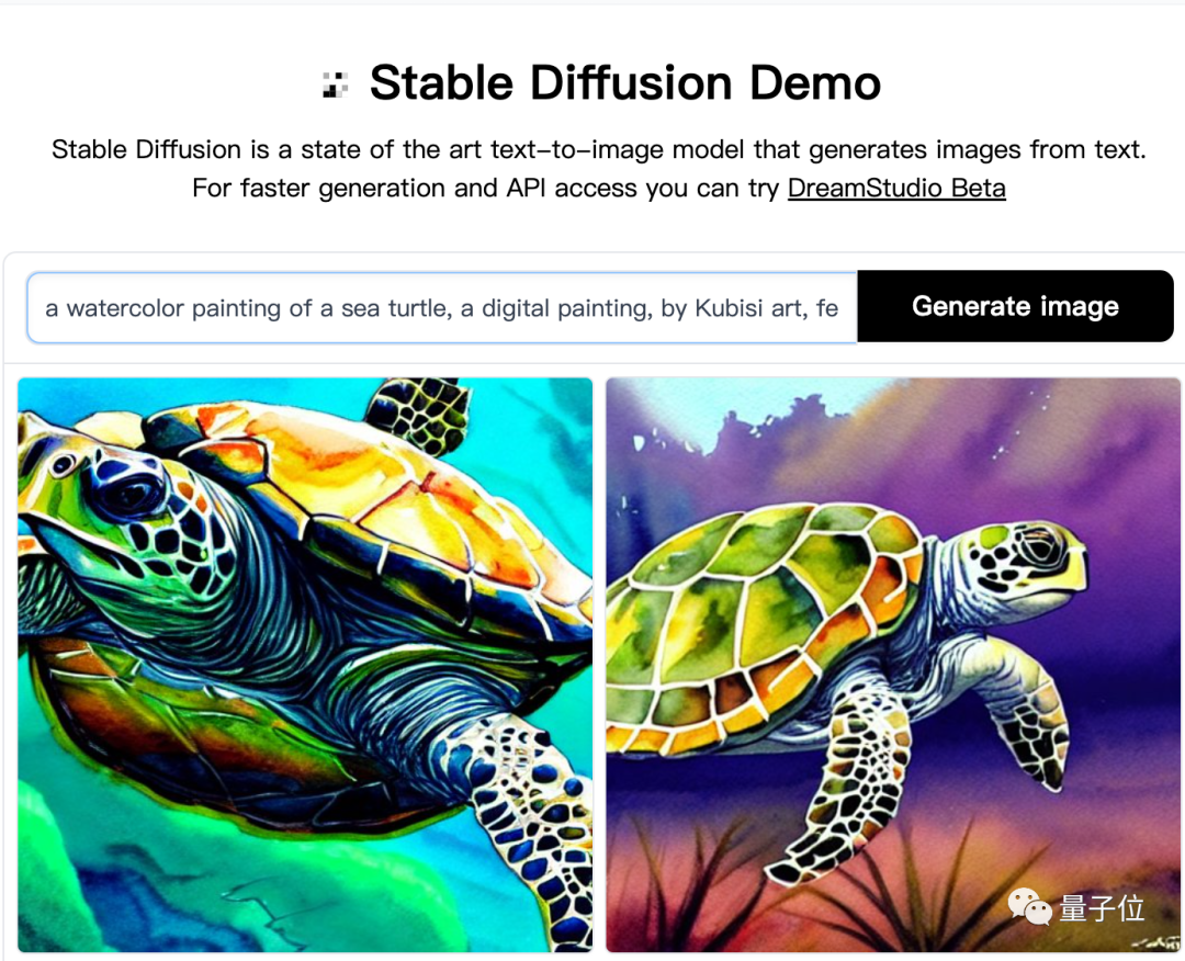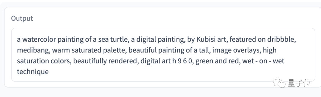AI生成的描述会包含主体内容“海龟”、艺术风格“水彩画”、作者或风格相似的作者、可能出现在什么网站、主要颜色、饱和度等等,甚至还能给出专业的绘画技法“wet-on-wet”。