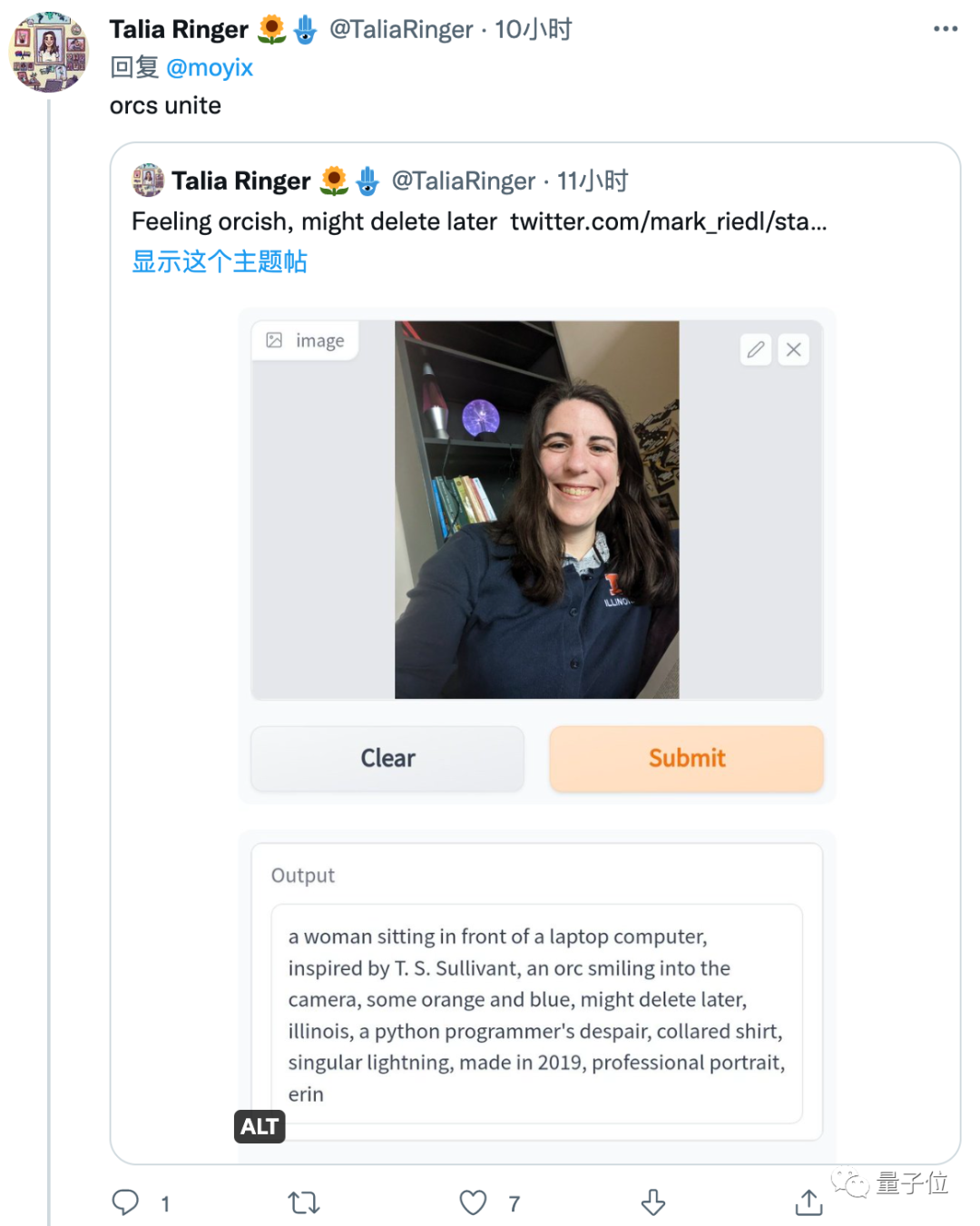 上面这个玩法,相当于把最近火爆的AI绘画逆过来玩,输入图片输出文字描述。