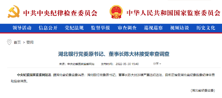今年5月,湖北银行党委原书记、董事长陈大林涉嫌严重违纪违法,接受湖北省纪委监委纪律审查和监察调查。此事一度引起湖北金融圈震动,亦令市场对湖北银行上市计划能否顺利进行产生疑虑。
