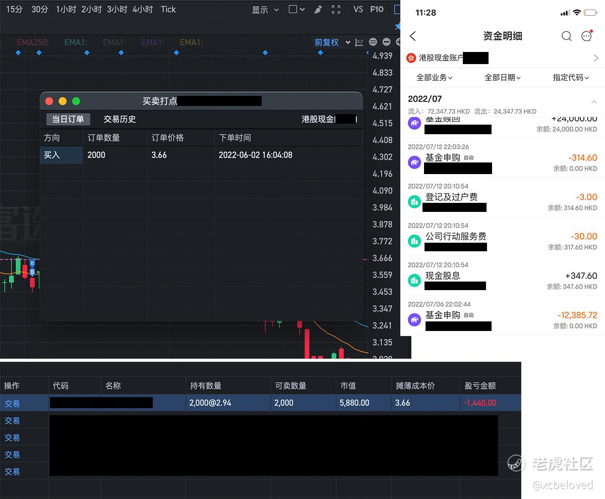 以上图片是港股中的非H股不对股东除权除息的证据。分红前后的持仓成本单价都是3.66港元。