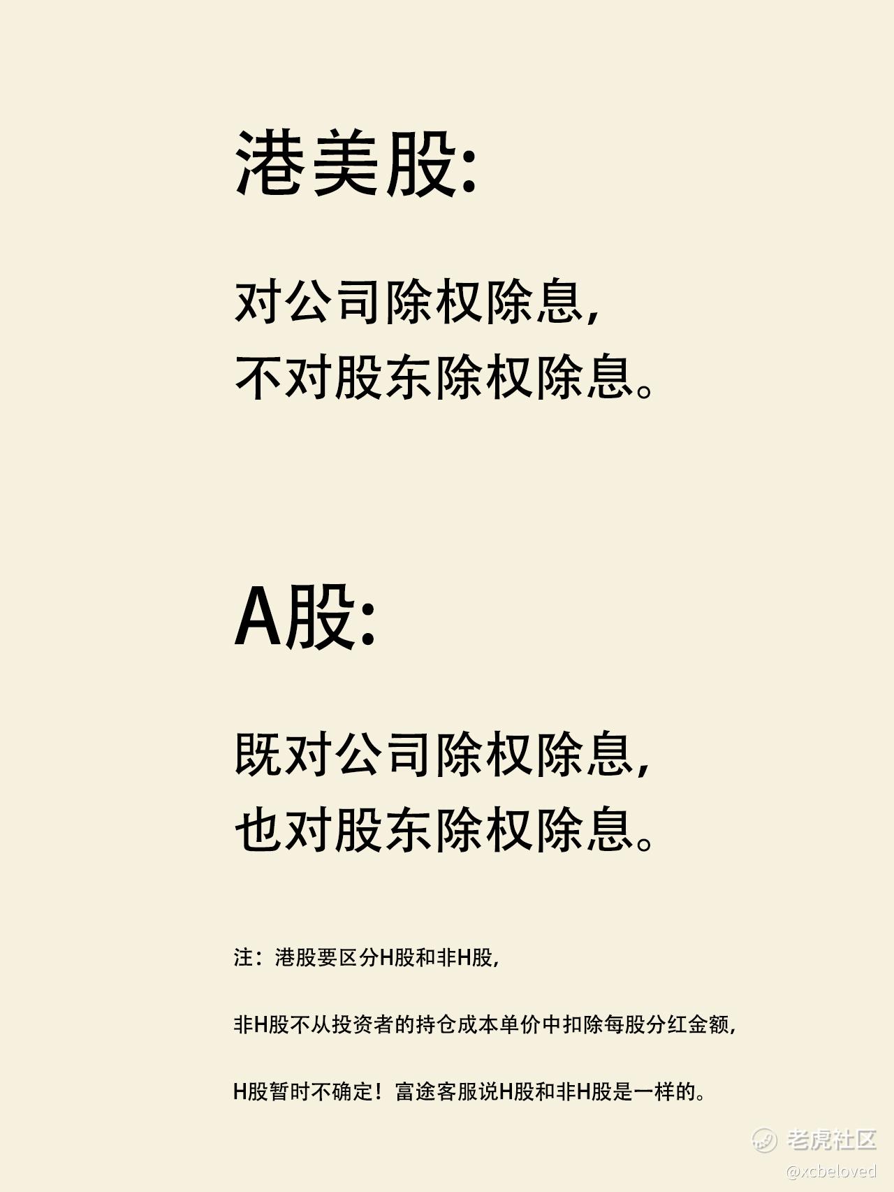 对公司的除权除息就是,分红后从公司股价中扣除每股分红金额,对股东除权除息就是,分红后从持仓成本单价中扣除每股分红金额。对公司的除权除息,港股和A股一样。