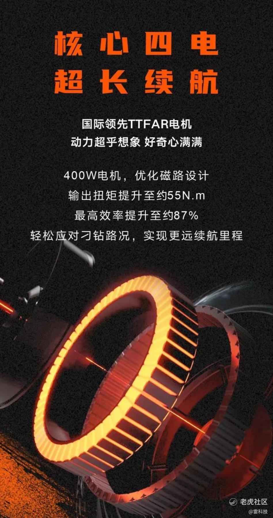 不仅如此,雅迪冠能3 S9 MAX还搭载了国际领先的TTFAR 电机,通过优化磁路设计增加功率密度,使这款电机的最高效率提升至约87%,使雅迪冠能3 S9 MAX得以轻巧征服刁钻路况,实现更远续航里程。