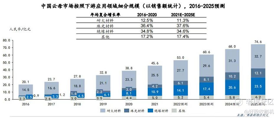 从应用结构来看,云母的主要应用领域为耐火材料、绝缘材料和珠光颜料,市场占比超80%。云母作为基材制作的云母绝缘阻燃组件,用作新能源汽车电池中的安全防护材料,电绝缘性能和阻燃性大幅度改善,能极大提升新能源动力电池的安全,有广阔的市场空间。