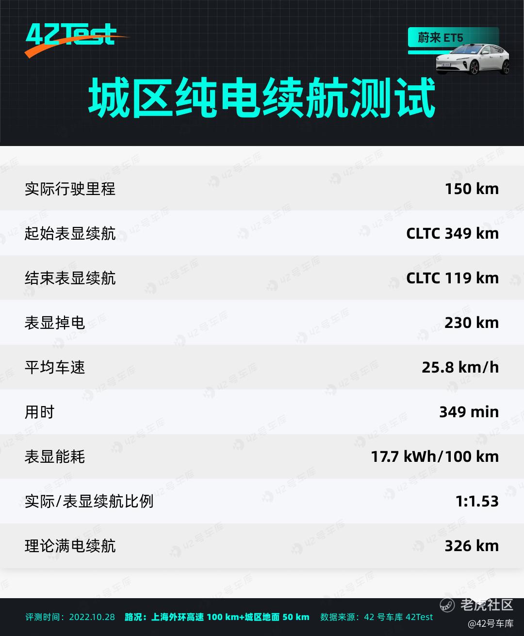 那么在这辆曾经刷爆了朋友圈的「神车」,是否真的在各方面比肩大哥 ET7 ?我们同样以 42Test 的标准,从城市/高速续航、充电速度、性能表现等维度进行评测,看看 ET5 的真实能力究竟如何。