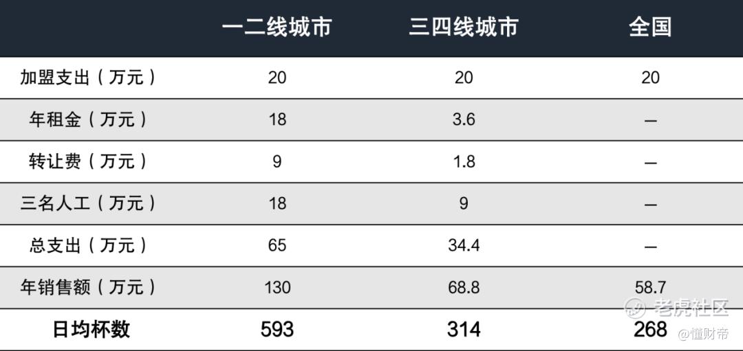 单店测算:每日卖出268杯,一至四线加盟商赚不了钱