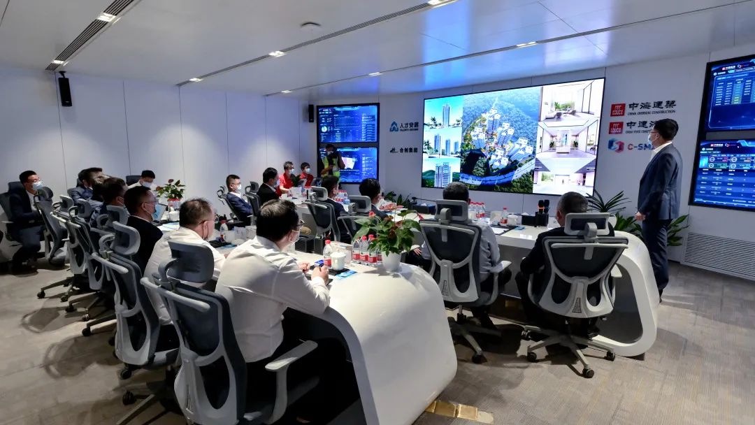 中国建筑国际办公室、人力资源部、投资部、科技管理部,中建海龙科技、中海建筑有关负责人参与调研。