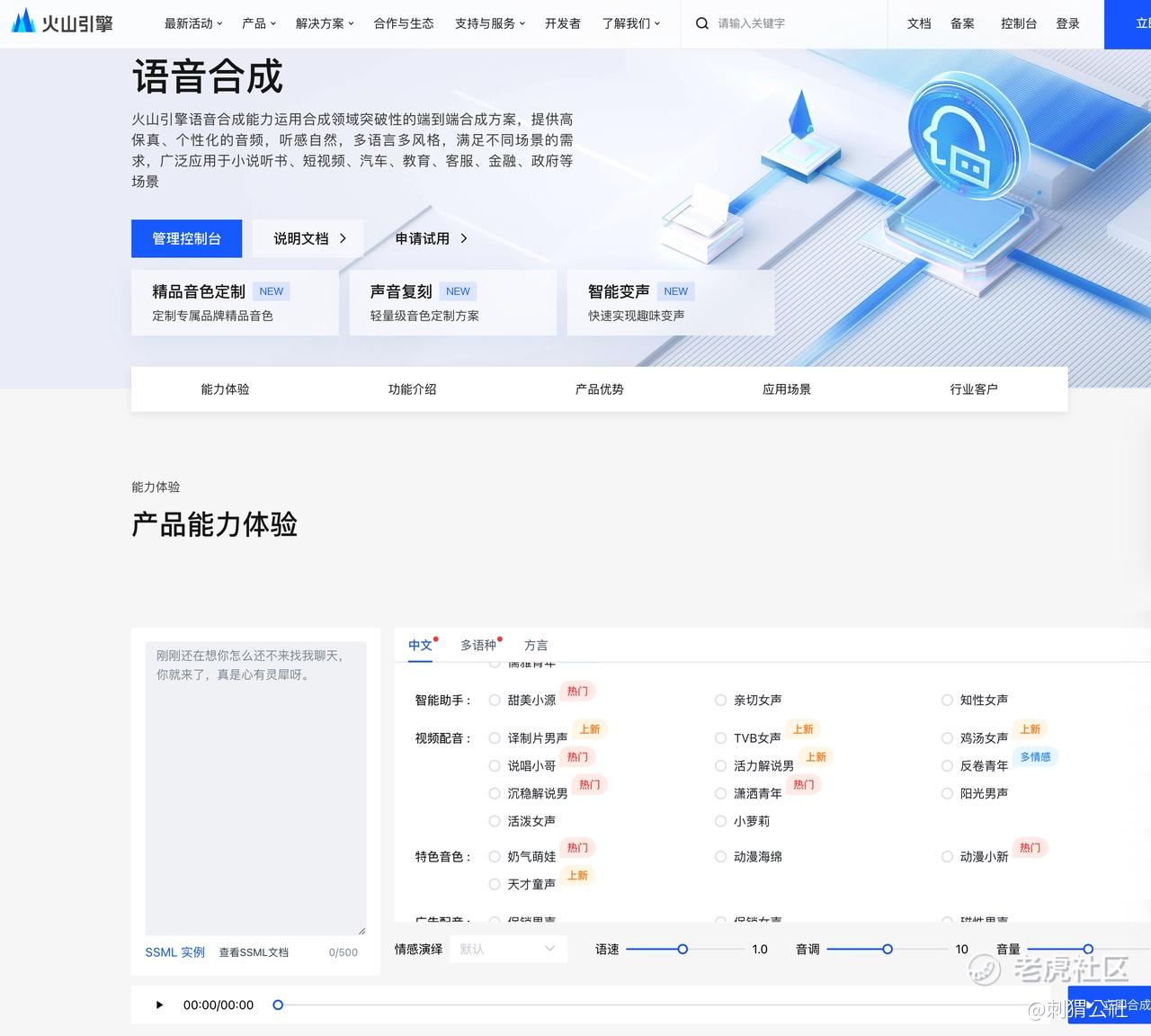 欢迎搜索「语音合成 火山」,体验媲美真人的合成效果