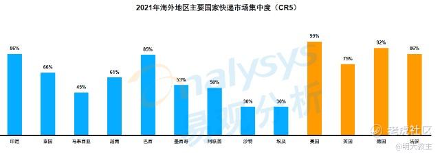 2021年,东南亚、拉美、中东快递市场集中度(CR5)也低于发达国家。我国快递公司出海新兴市场大有可为!