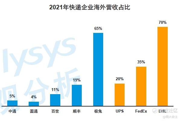 目前,海外快递业务占总营收比例最高的是尚未上市的极兔(海外占比65%),其次是A股快递龙头顺丰(海外占比19%)。