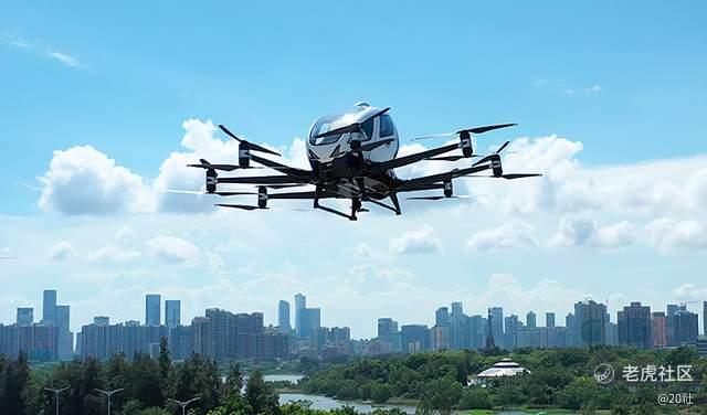 我们先来看看国内最先上市(2019 年),并于去年底最先进入中国民航局适航审定流程的亿航公司的方案。亿航原来的主业是消费级无人机,2016 年开始转型研发飞行汽车,其产品外观类似放大版的无人机。
