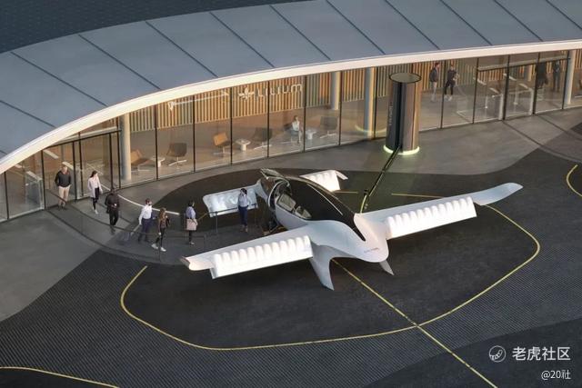 一个垂直机场的七座 Lilium 飞机设想图
