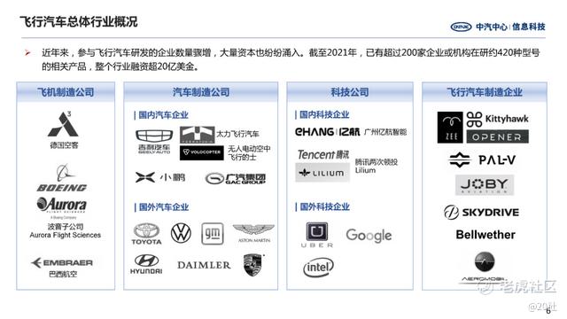 丰田、本田、铃木、奥迪、奔驰、保时捷、通用、现代、Stellantis集团等传统跨国车企,谷歌、英特尔、优步等海外科技巨头,以及国内的吉利、广汽等车企都在飞行汽车领域有所布局。