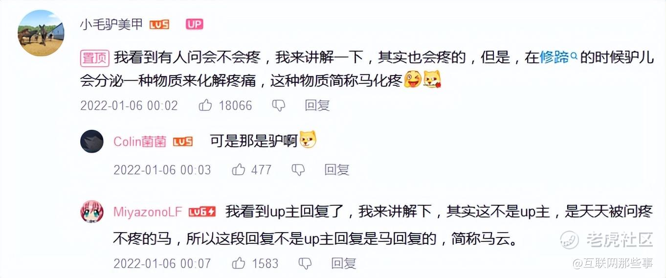 例如修蹄视频下总是被被提到的梗“——这么切蹄子马不疼吗?——不疼,因为这是驴。”
