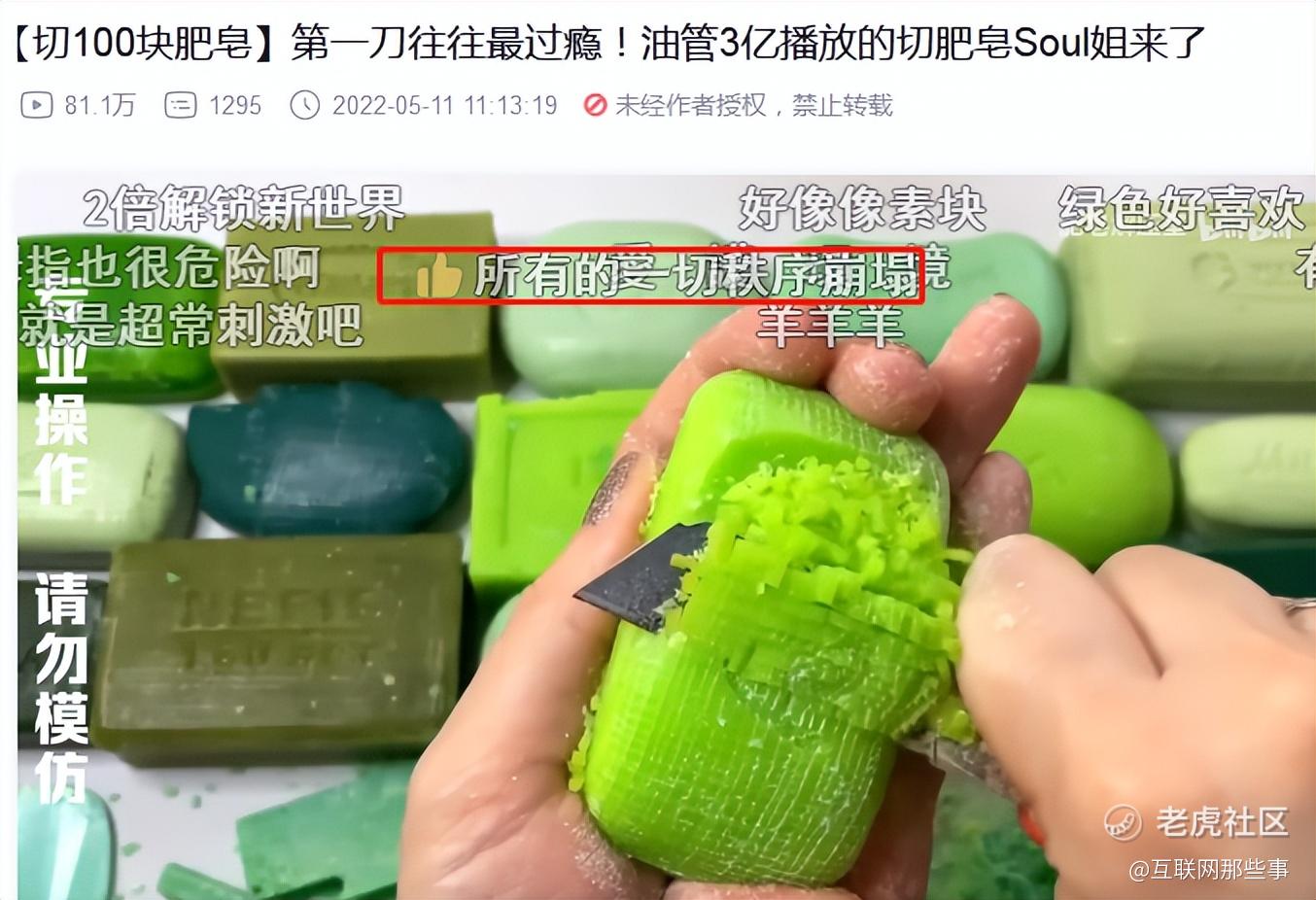 今年5月份,油管上有3亿播放的“Soul姐”入驻B站,在他的第一条切肥皂视频里,有一条高赞回答了,切肥皂的过程让人感受到“所有的一切秩序的崩塌”。