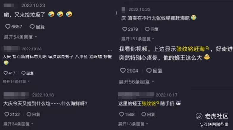 抖音前排则总是在调侃大庆是在“捡垃圾”、近期还经常提及另一个赶海博主。