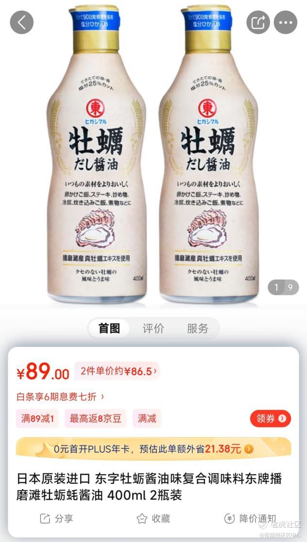而前文提到的400毫升天价东字牡蛎酱油,到了京东超市,两瓶只需89元,最近一个月销量突破200套。有网友表示:“牡蛎酱油很鲜,有点儿蚝油混着酱油的感觉,炒饭的时候加点它,简直太香了。”