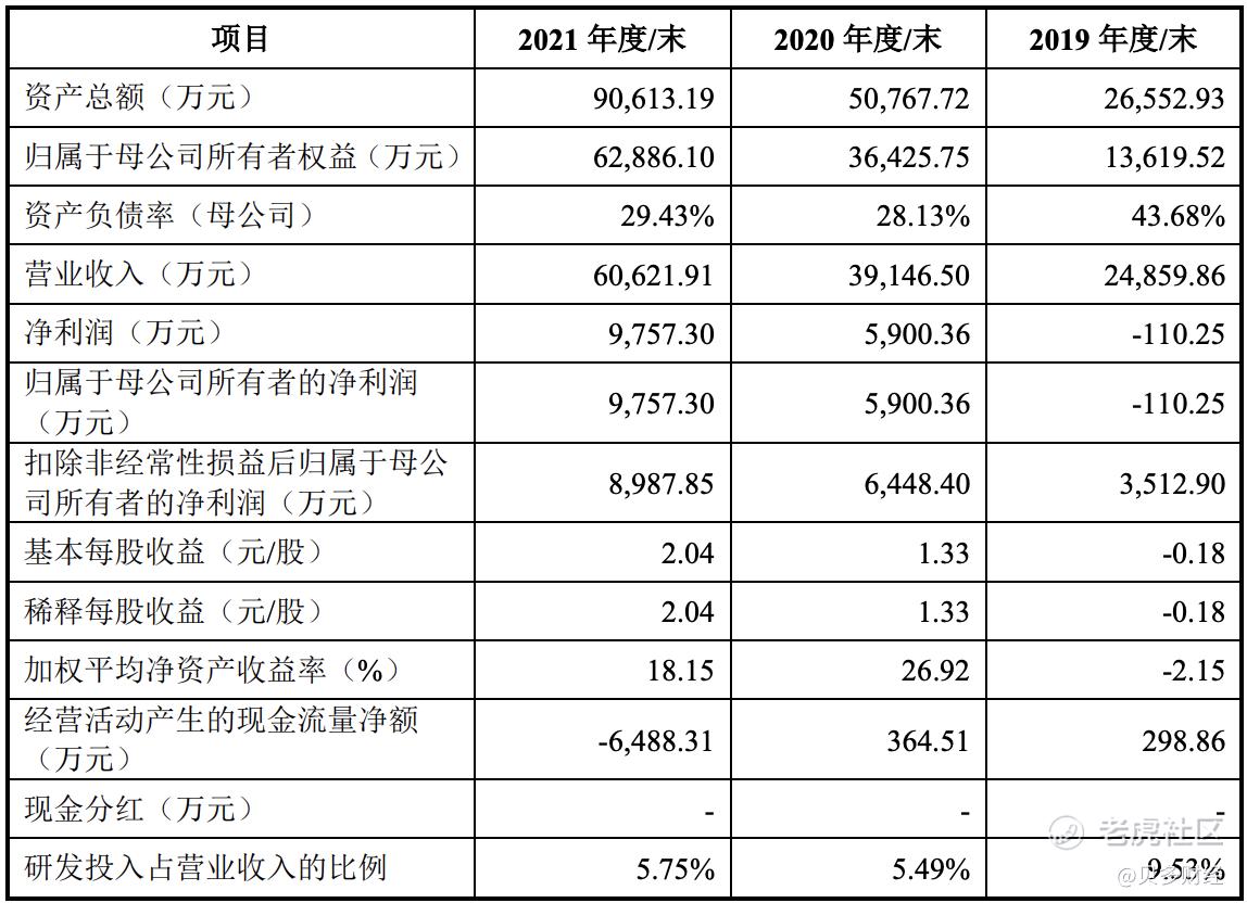 招股书显示,毕得医药2019年、2020年和2021年的营收分别为2.49亿元、3.91亿元和6.06亿元;净利润分别为-110.25万元、5900.36万元、9757.30万元,扣非后净利润分别为3512.90万元、6448.40万元和8987.85万元。