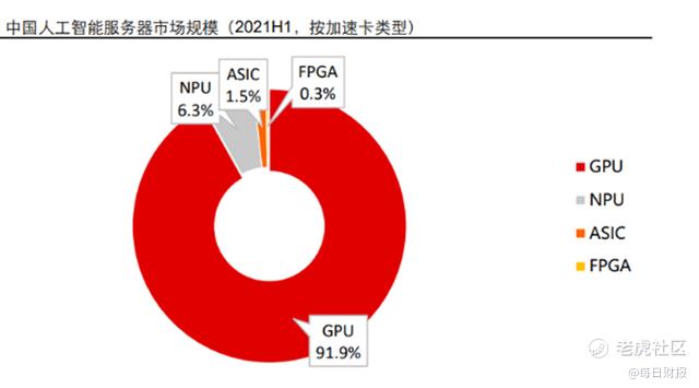 当前主要兴起的计算芯片分别为 GPU、ASIC、FPGA 等,其中 GPU 最初专用于图形处理制作,后逐渐应用于计算,是核心计算资源底座。以在 AI 市场的应用为例,IDC 研究发现,2021 年上半年,中国人工智能芯片中,GPU依然是实现数据中心加速的首选,占有90% 以上的市场份额,而 ASIC、FPGA、NPU 等其他非 GPU 芯片也在各个行业和领域被越来越多地采用,整体市场份额接近10%。