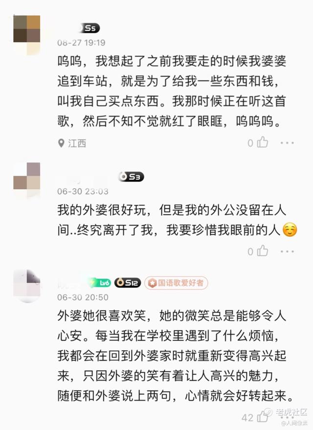 或许是旺仔小乔透明、干净的嗓音让对外婆的情感有了更真实的形状,在QQ 音乐上,旺仔小乔那首《外婆桥》的评论区,许多人写下对外婆的思念。