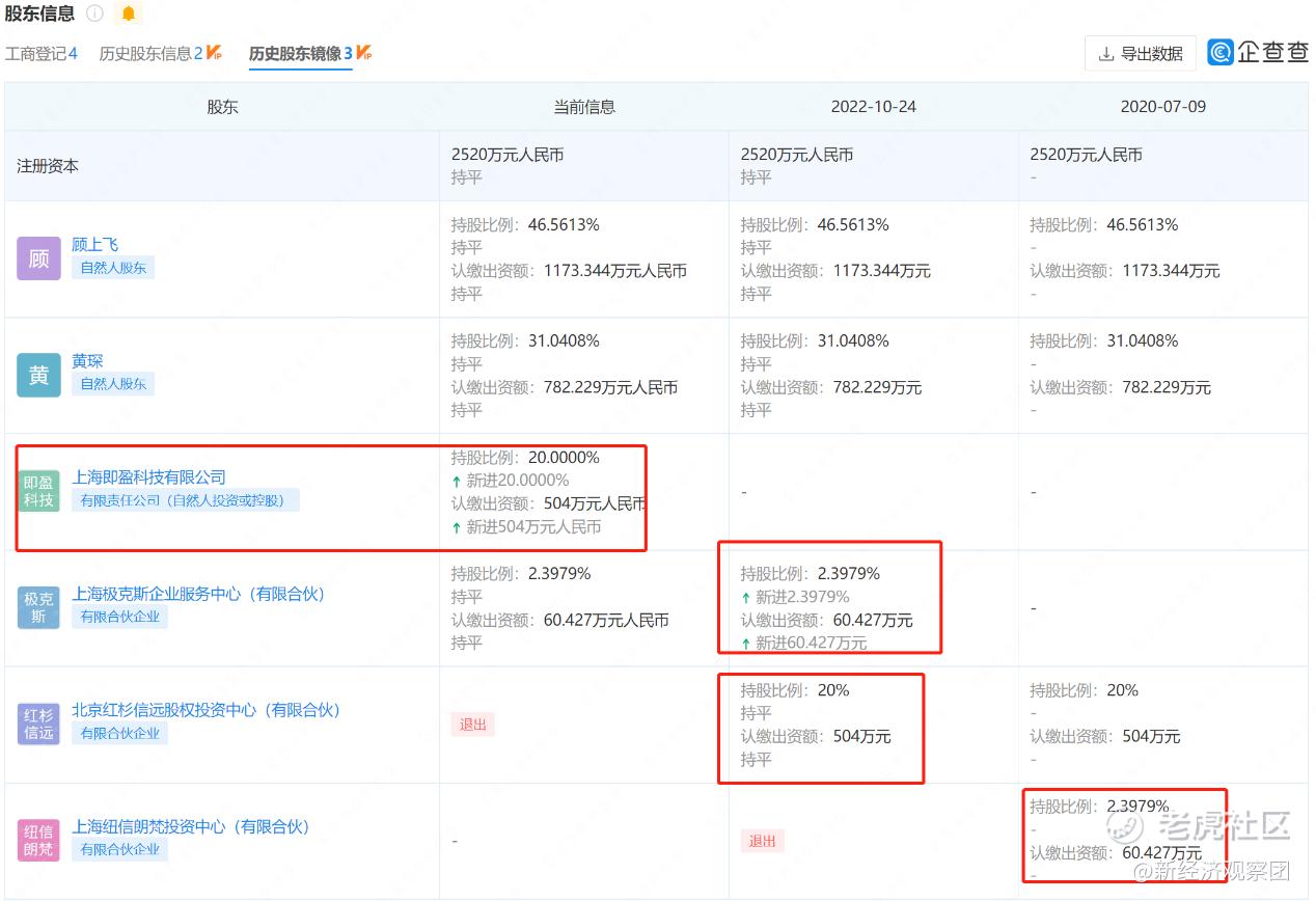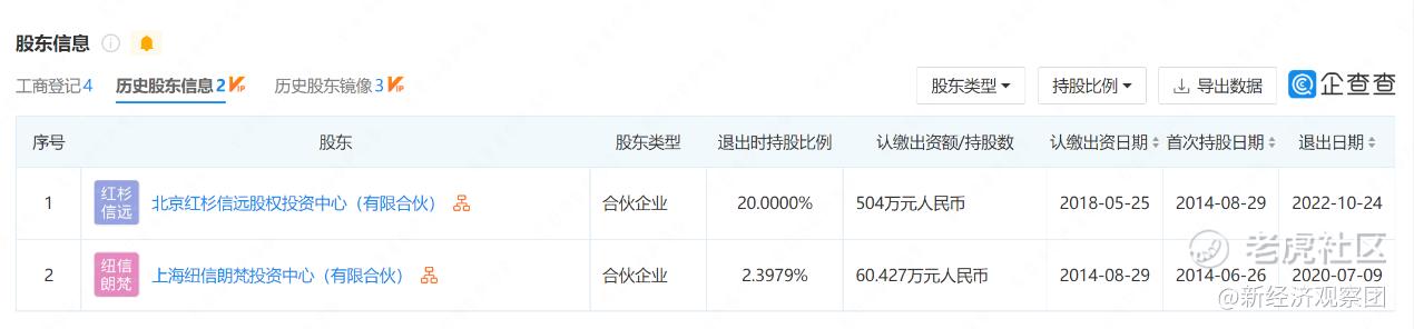 无独有偶,两年前的2020年7月9日,另一家明星资本上海纽信朗梵投资中心(有限合伙)(以下简称“纽信创投”)也退出了即科集团的股东之列,退出时持股比例为2.3979%。