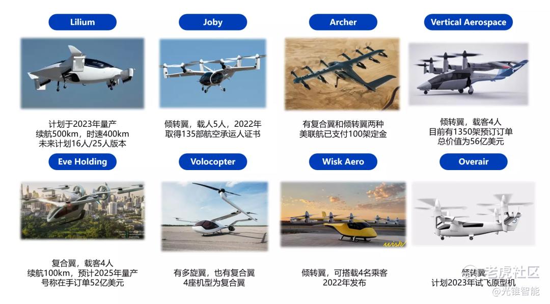 6、目前对于选择何种机型技术路线尚未形成共识,复合翼方向兼顾实现可行性及先进性,倾旋翼方向更为先进,但实现难度更大。