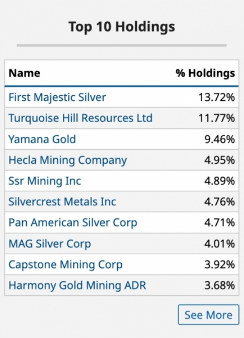 $ETFMG Prime Junior Silver Miners ETF(SILJ)$(SILJ)的主要持股包括: