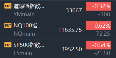 11月21日,美股指期货走低,截止发稿,道指期货跌0.32%,纳指期货跌0.62%,标普500指数期货跌0.54%。