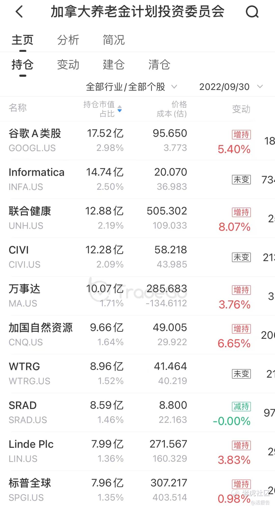 二、加拿大养老金:增持两只北美油气股、三只本土银行股,重仓股长期持有不动