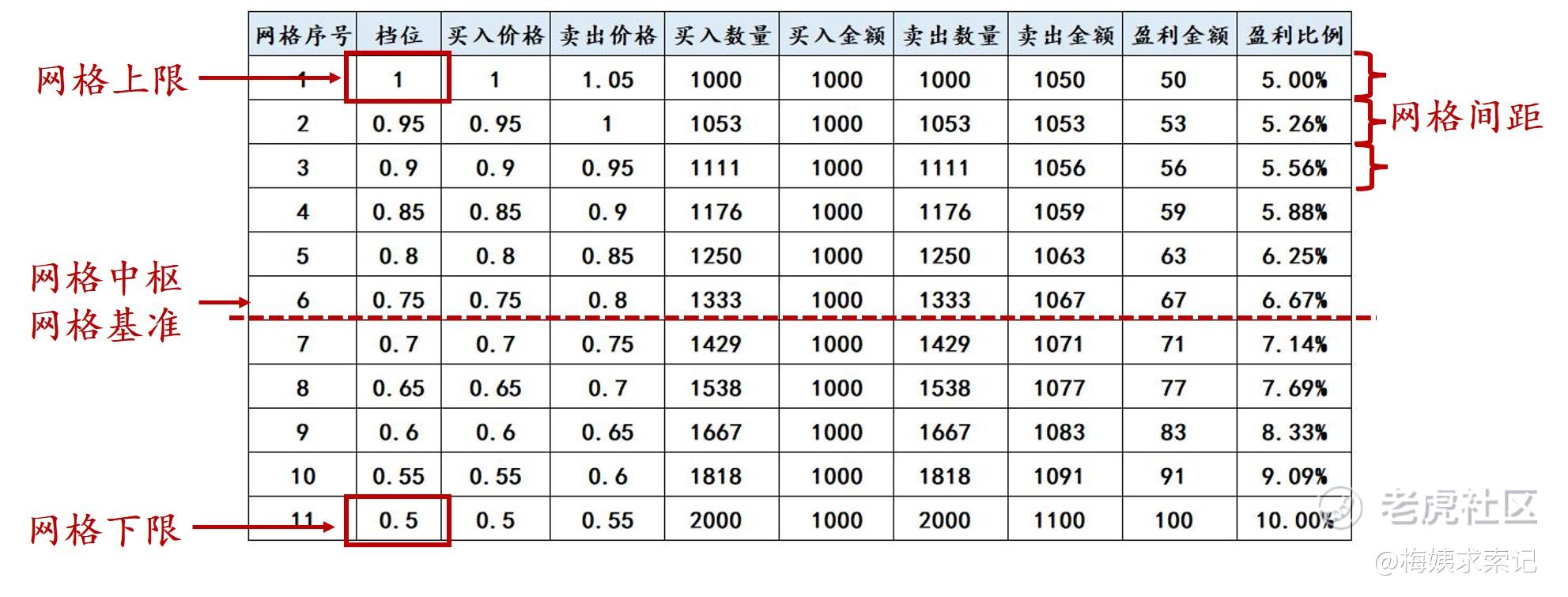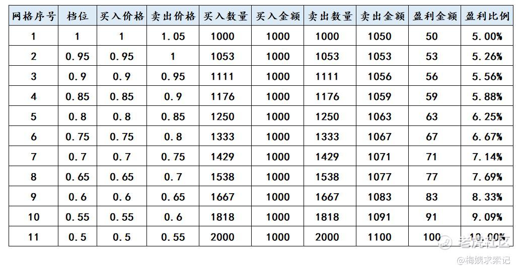 像上表中每一格网格买卖的涨跌幅5%就是网格间距。