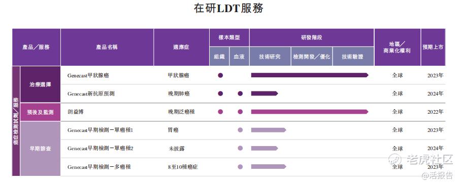 下图概述截至最后实际可行日期公司在研产品及服务组合的研发进展情况,包括体外诊断(「IVD」)在研产品及医学检验实验室自建检测项目(「LDT」)在研服务: