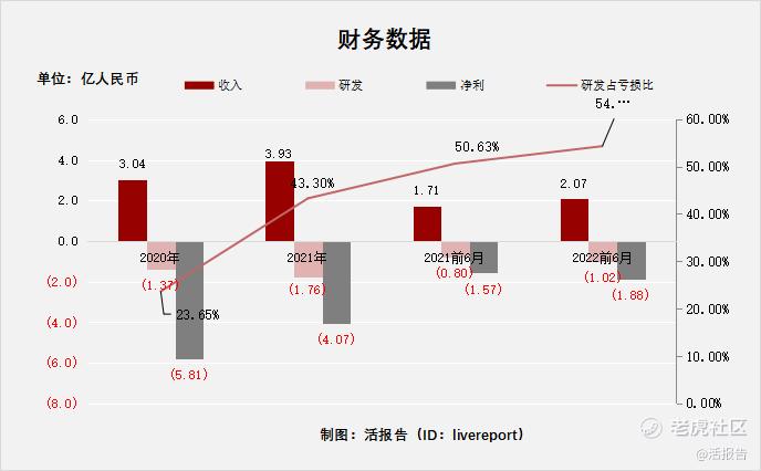 - 研发占亏损比分别约为23.65%、43.30%、50.63%及54.31%,2021年同比增长率83.09%,2022前6月同比增长率为7.25%;
