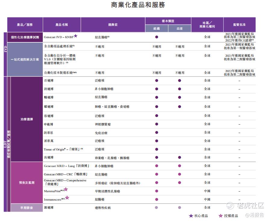 公司目前在市场上有20种商业化产品和服务,以及18项处于不同开发阶段的在研产品及服务。于2020年、2021年及截至2022年6月30日止6个月,公司分别为20,585名、27,304名及15,257名癌症患者提供了诊断及检测服务。