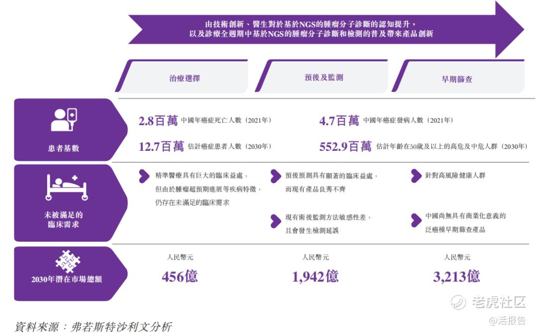 下表总结了公司三个业务领域:治疗选择、预后及监测以及早期筛查的市场机会